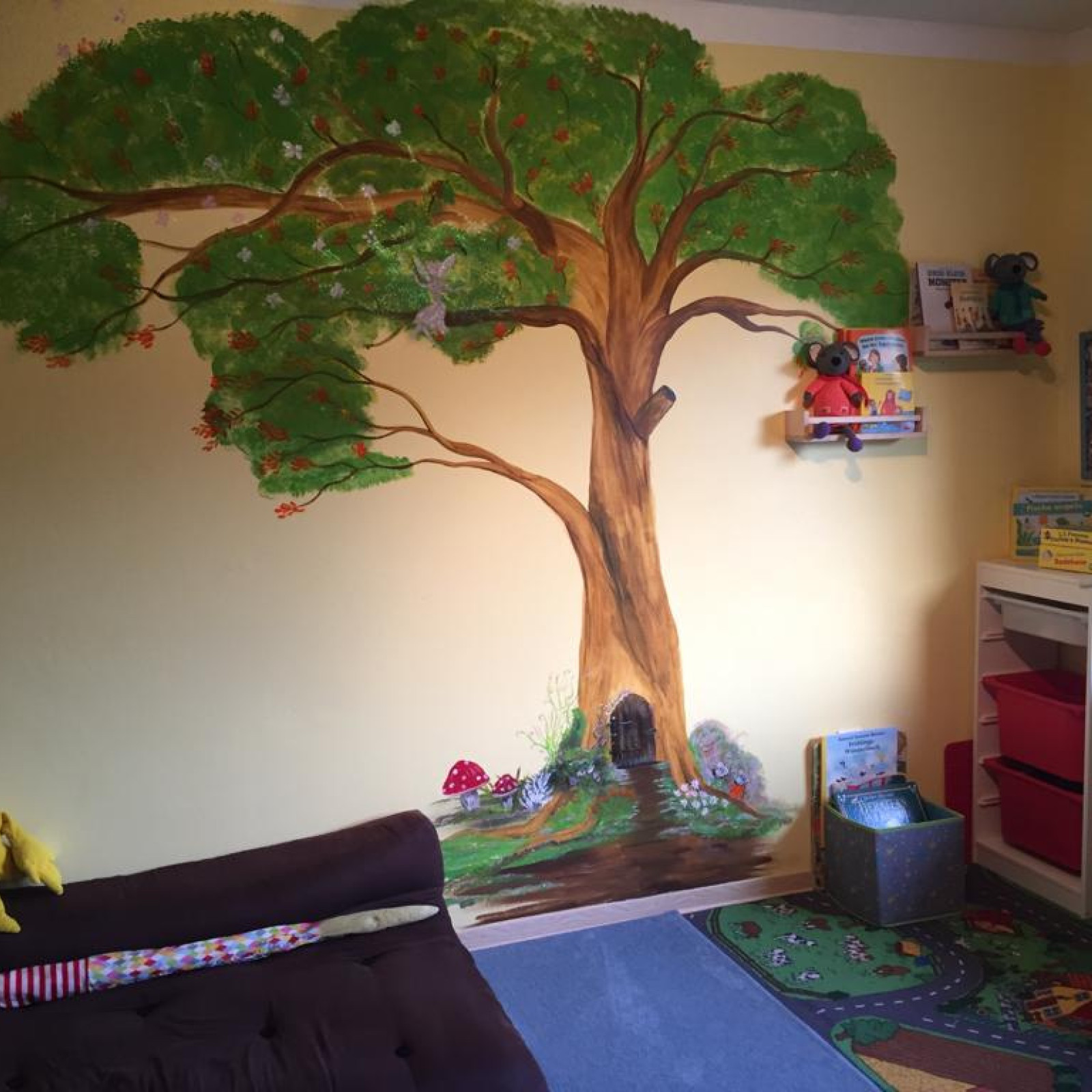 Die liebevoll gestalteten Innenräume bieten den Kindern einen sicheren Raum zum Spielen und Entdecken. Im Garten erwartet sie ein kleiner, liebevoll gestalteter Spielplatz, der zum Spielen und Toben einlädt.